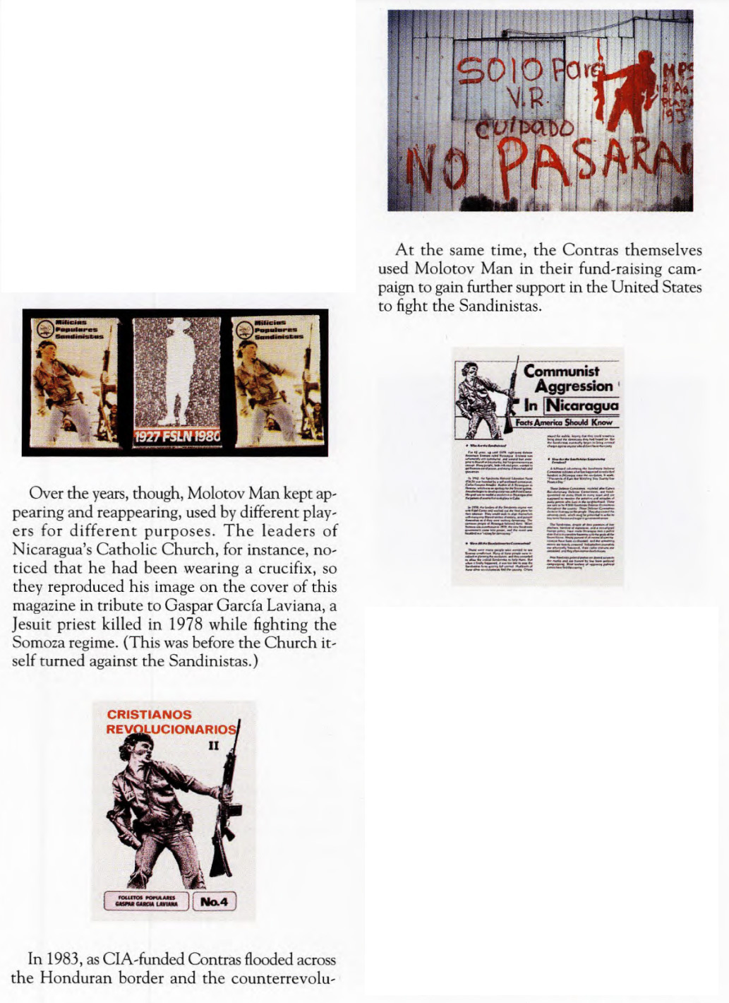 «In 1990, I returned to Nicaragua with two filmmakers to document what had happened to the people in my earlier photographs. I learned that “Molotov Man” was Pablo Arauz, who was known as “Bareta” during the war, still identified himself as a Sandinista, and had ended up with a family and a pretty good job delivering lumber. (He owned his own truck)». Joy Garnett and Susan Meiselas, On the rights of Molotov Man, Appropriation and the art of context. 2007.