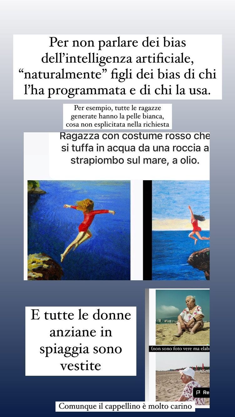 In questi giorni mi sto divertendo a interrogare le AI che generano immagini perché è molto facile riconoscere nelle riproduzioni bias e stereotipi appresi.